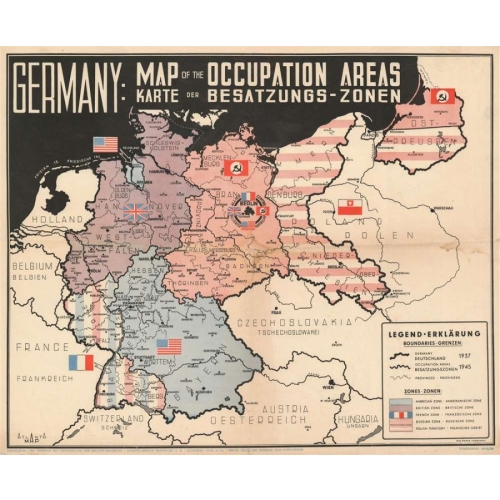 1945 Atlanta GmbH Map of Germany and Allied Occupation Zones After World War II